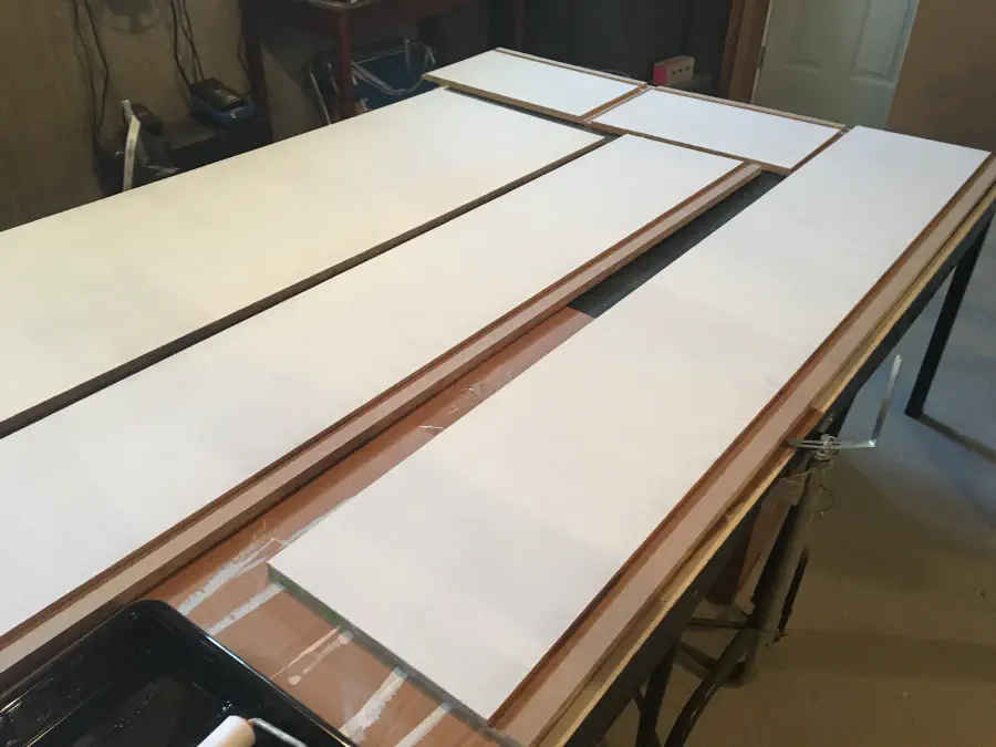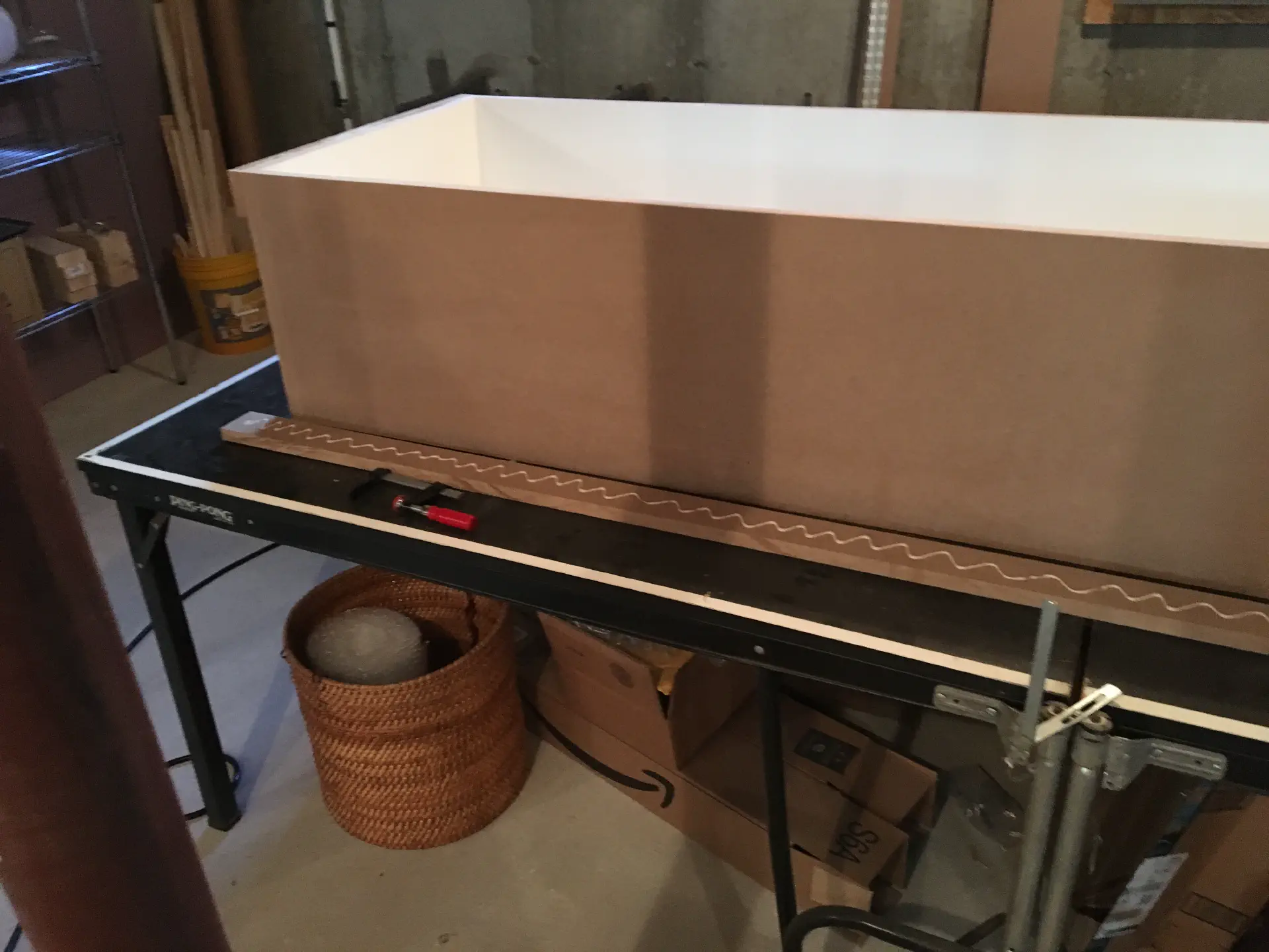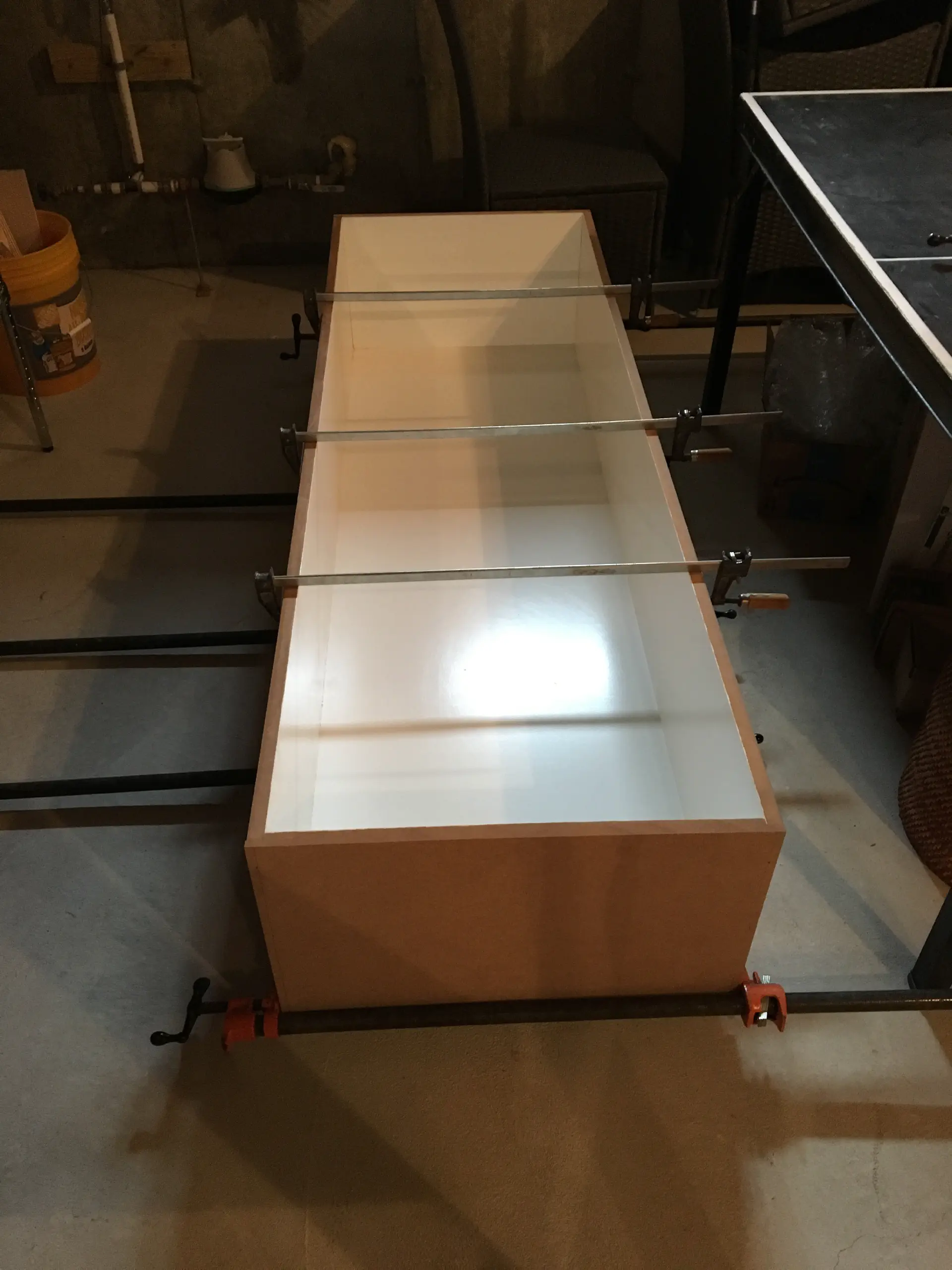 At this point, I had already painted one side of the "top" for this, but was really nervous it was going to sag over time with it just being MDF. I picked up some poplar and ripped it down to 1x3/4 and used that as an edging for the MDF top and also gave it a bit of rigidity. I'm still pretty nervous it'll sag in the middle, but ideally it won't be as bad as with just MDF. There (hopefully) won't be much consistent weight on the lid like shelves, so I'm betting it will be alright. I used the Benjamin Moore Advanced series paint again on this project. I really love how the paint looks when finished, but it takes an extremely long time between coats and has a really long cure time. Since I'm so slow at these projects (:D) it tends to work out alright for me, but if I could do more than a single coat of paint per day, that'd be awesome.
